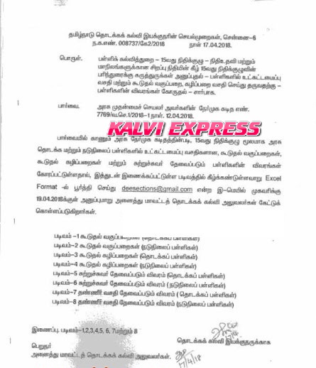 DEE PROCEEDINGS-பள்ளிகளில் உள்கட்டமைப்பு மற்றும் கூடுதல் வகுப்பறை ,கழிவறை வசதி செய்து தருவதற்கு பள்ளிகளின் விவரம் கோருதல் சார்பு proceding 0 Comments Tags proceding