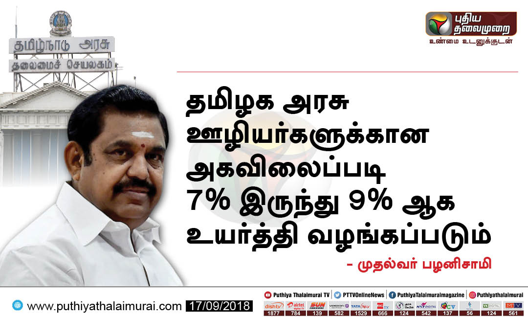 தமிழக அரசு ஊழியர்களுக்கு அகவிலைப்படி 2% உயர்வு